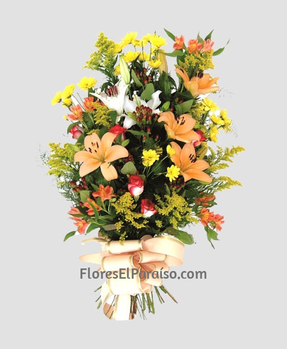 Bonito, de aire silvestre, este Ramo Funerario tonos Naranjas. Es un ramo de defunción, de flores variadas, en tonos naranjas, confeccionado con lilium, rosas, margaritas, solidago, hipericum. alstroemelia y verdes variados que le dan al ramo funerario un aire primaveral y silvestre. Enviamos los ramos como muestra de cariño, aprecio y acompañamiento para la familia de la persona fallecida. Este ramo de flores para difunto, es un producto extraordinario, con flores frescas suministradas a diario por nuestros proveedores, nacionales e internacionales. Por lo que lo elaboraremos lo más parecido posible o a gusto del cliente. Nuestros trabajos de flores para defunción, están siempre realizados con flores y verdes variados, Son ramos para funeral efectuados de forma totalmente artesanal por floristas profesionales, expertos en el arte floral funerario, por lo que su ramo quedará bonito y elegante.